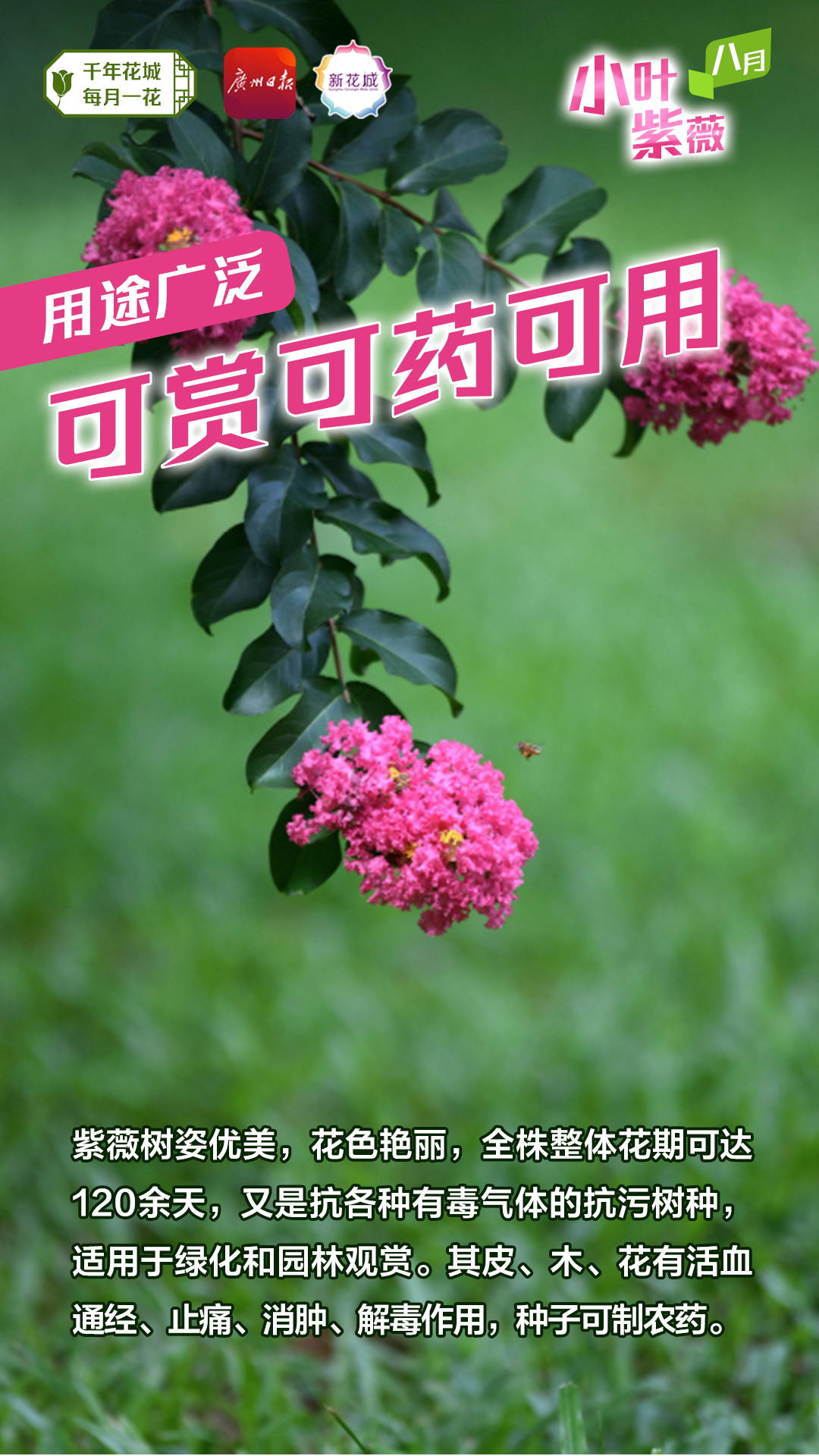 小叶紫薇的叶子较小,花簇沉甸,花色缤纷。一簇簇鲜艳的花朵犹如摇曳的风铃,徜徉其中宛如置身一片万紫千红的花海,吸引不少市民游客拍照打卡。