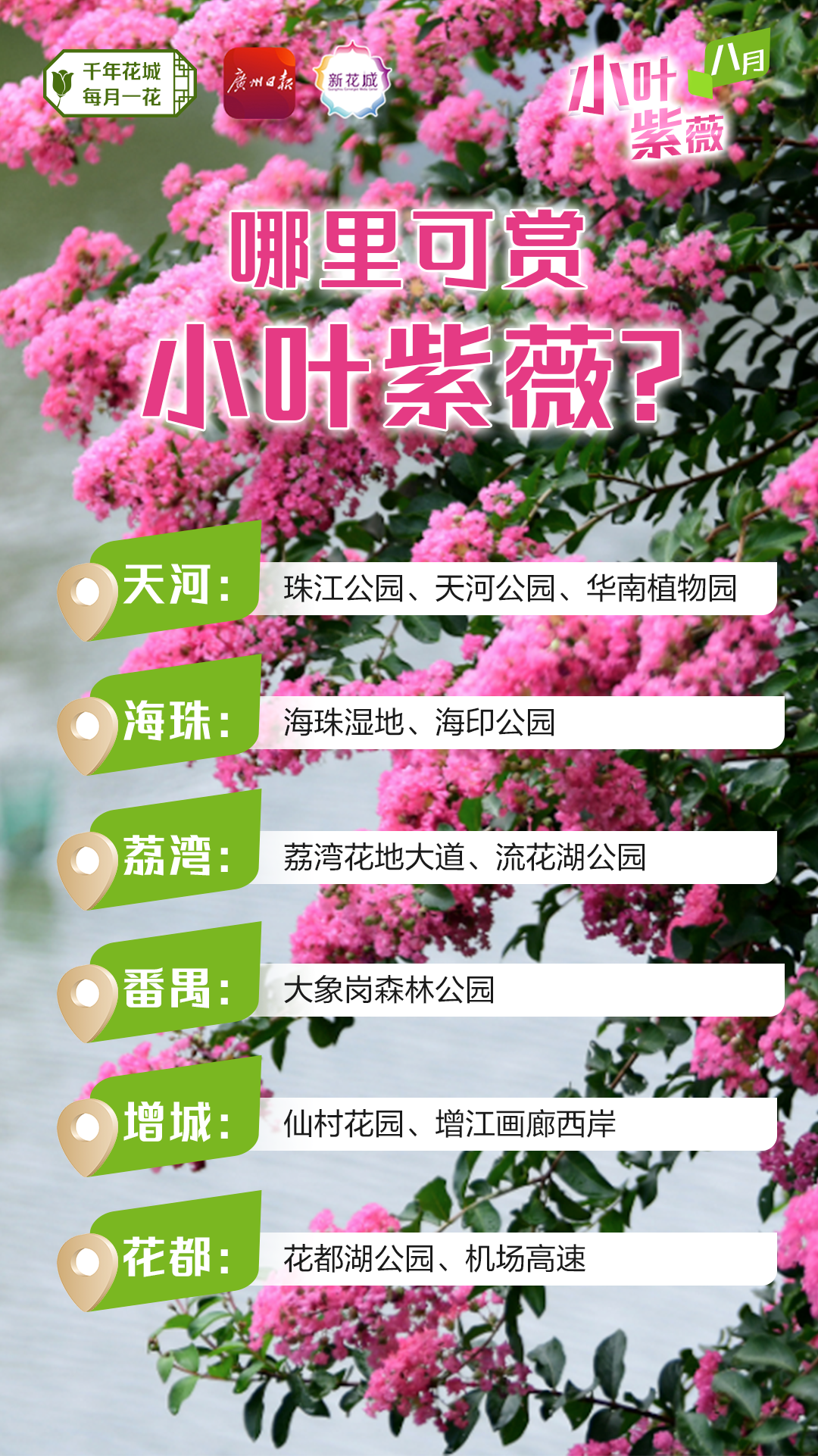 市民江先生在广州很多地方观赏过小叶紫薇,流花湖公园、华南国家植物园、海珠广场、滨江路海印公园、东山湖公园、荔湾湖公园、天河公园……都留下了他欣赏美景的身影。江先生说,小叶紫薇近段时间开得很好,与大叶紫薇花期相间,各有千秋,“华南国家植物园小叶紫薇品种比较多,除了紫红色,还有白色、淡红色,非常好看。”