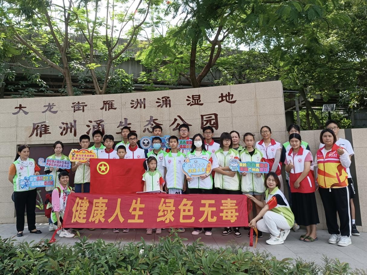 8月16日,广州市番禺区大龙街禁毒办联合团工委、广州市心明爱社会工作服务中心在雁洲涌湿地公园开展“水美大龙始于心 禁毒防毒践于行”志愿活动。