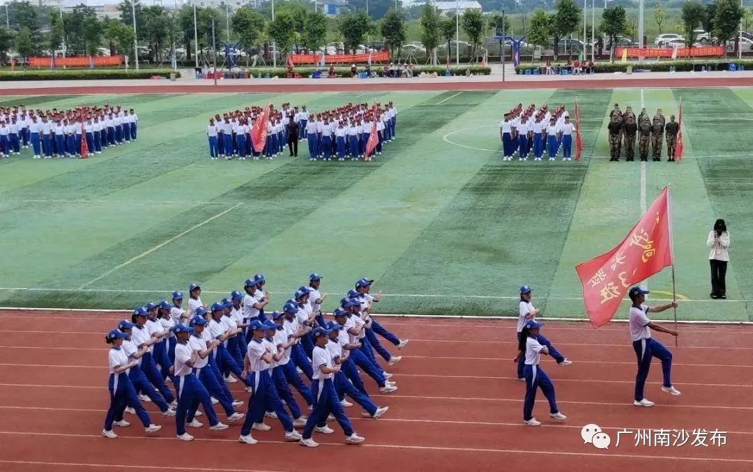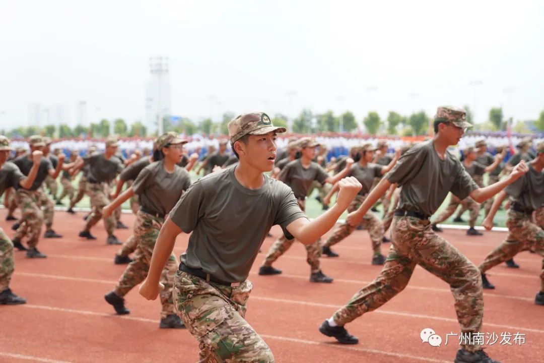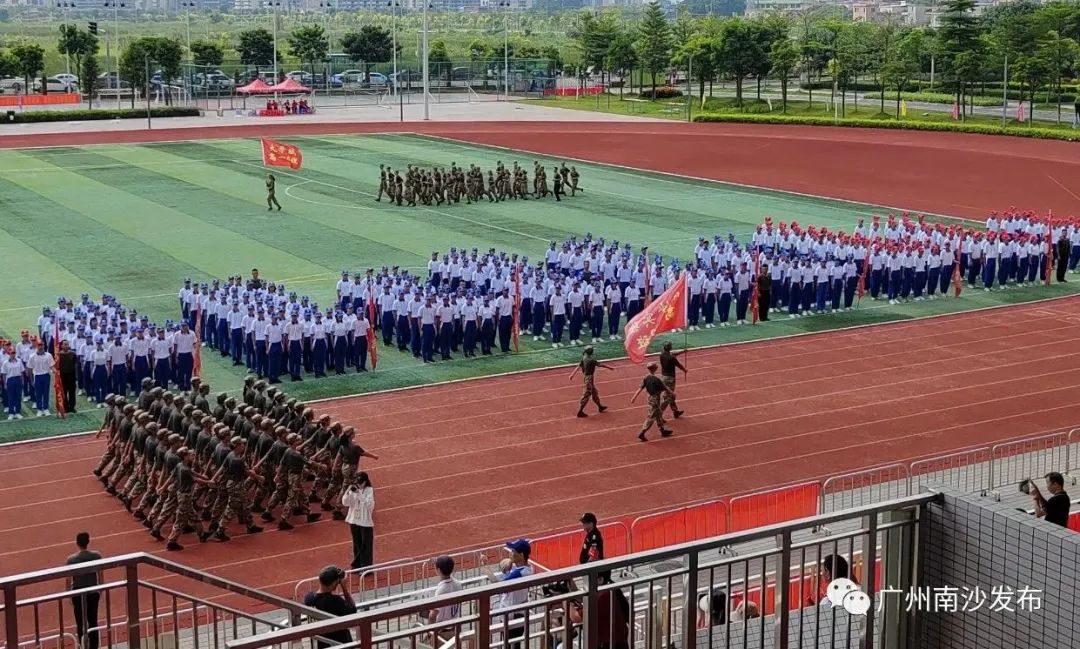 逾千名高一新生迈着整齐的步伐、喊着嘹亮的口号、以饱满的精神展现了当代军人的风采,也展示出了广州大学附中南沙实验学校学子的英姿。