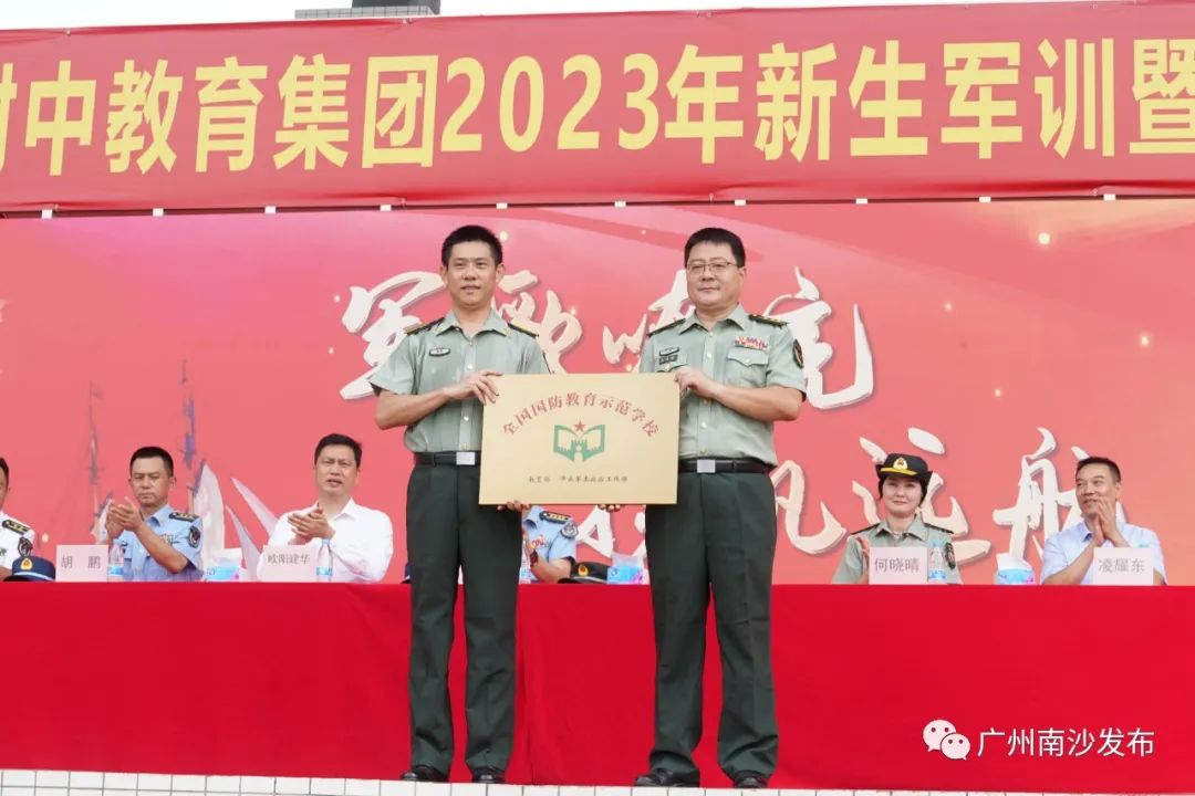 当日活动上,广大附中南沙实验学校正式接过牌匾,成为被教育部、中央军委政治工作部认定的全国中小学国防教育示范学校。