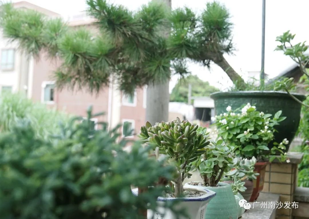 走入庭院之中,满园绿色映入眼帘。茉莉花、炮仗花、桂花、鹰爪兰、多肉、松树、嘉宝果、柠檬树等数十种植物错落有致地在庭院中奋力生长着,惬意的氛围在庭院中随处可感,这就是位于东涌镇西樵村的罗培连(下称罗姨)的家。