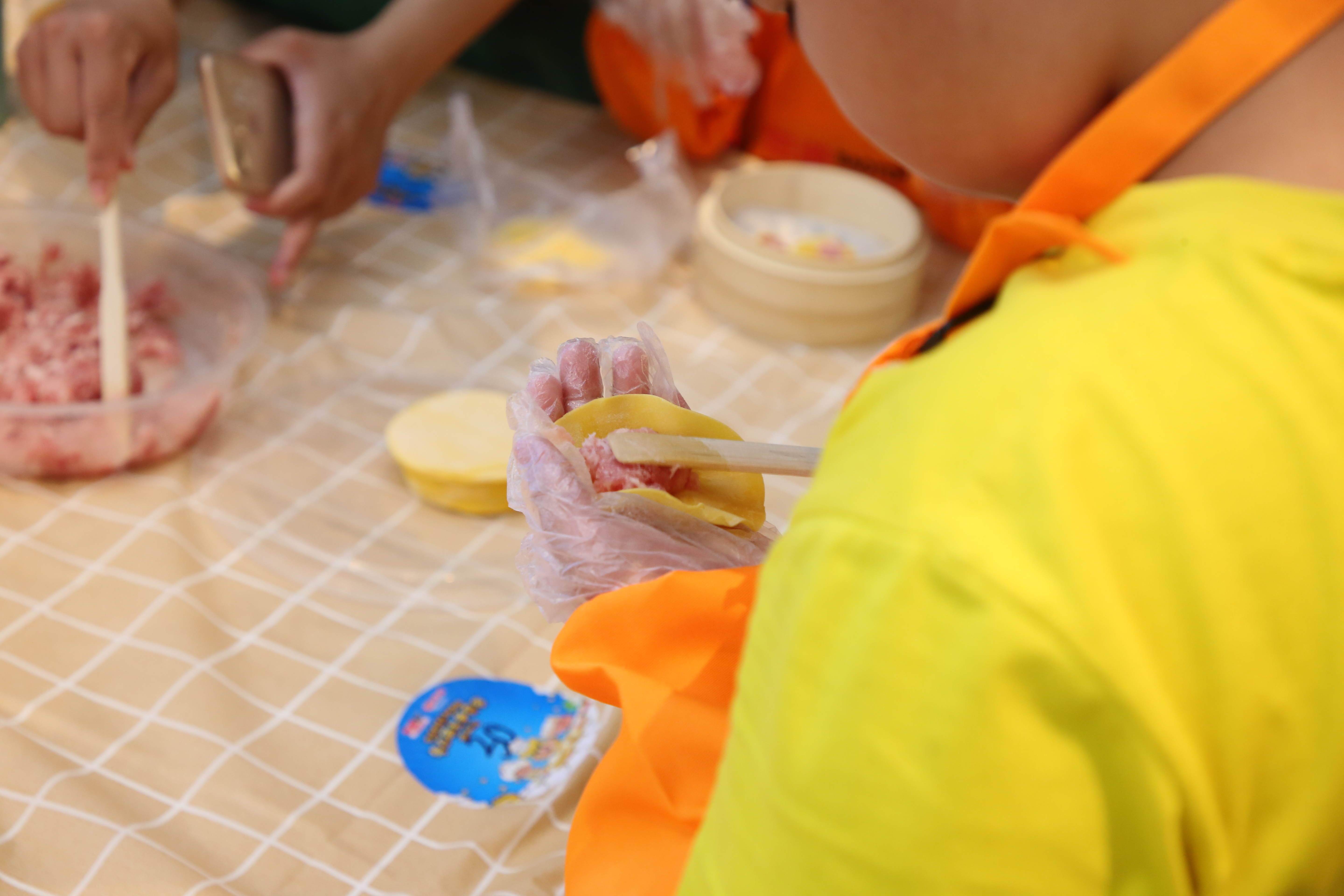在“广府饮食知多D”环节,广式烧卖制作技艺广州市级代表性传承人戴文青带领大家深入探讨广府特色的茶楼文化。他系统地介绍了广府饮茶典型习俗,梳理广府茶文化与中国其他地区茶文化的最大不同点,并通过互动问答的形式,激发小朋友们的学习热情。紧接着,戴老师为亲子学员们逐一介绍了广式烧卖的制作工具和食材,并亲自现场示范,小选手们认真观摩戴老师的演示流程。在比赛环节,小选手们有条不紊地拿皮、挑料、包制,展现出积极努力和不甘示弱的精神。