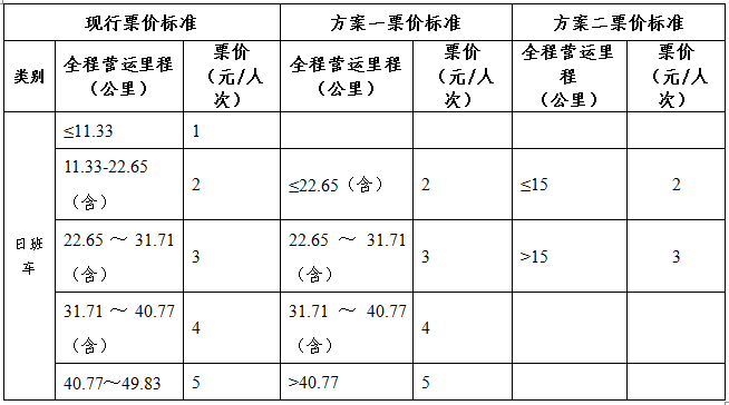 二是由于部分公交线路还承担着为中心城区长距离公交出行服务的功能,考虑这部分线路长、周转效率低、运营成本高,因此对超出适宜长度(大于15公里)的公交线路,按照3元标准设定基础票价。