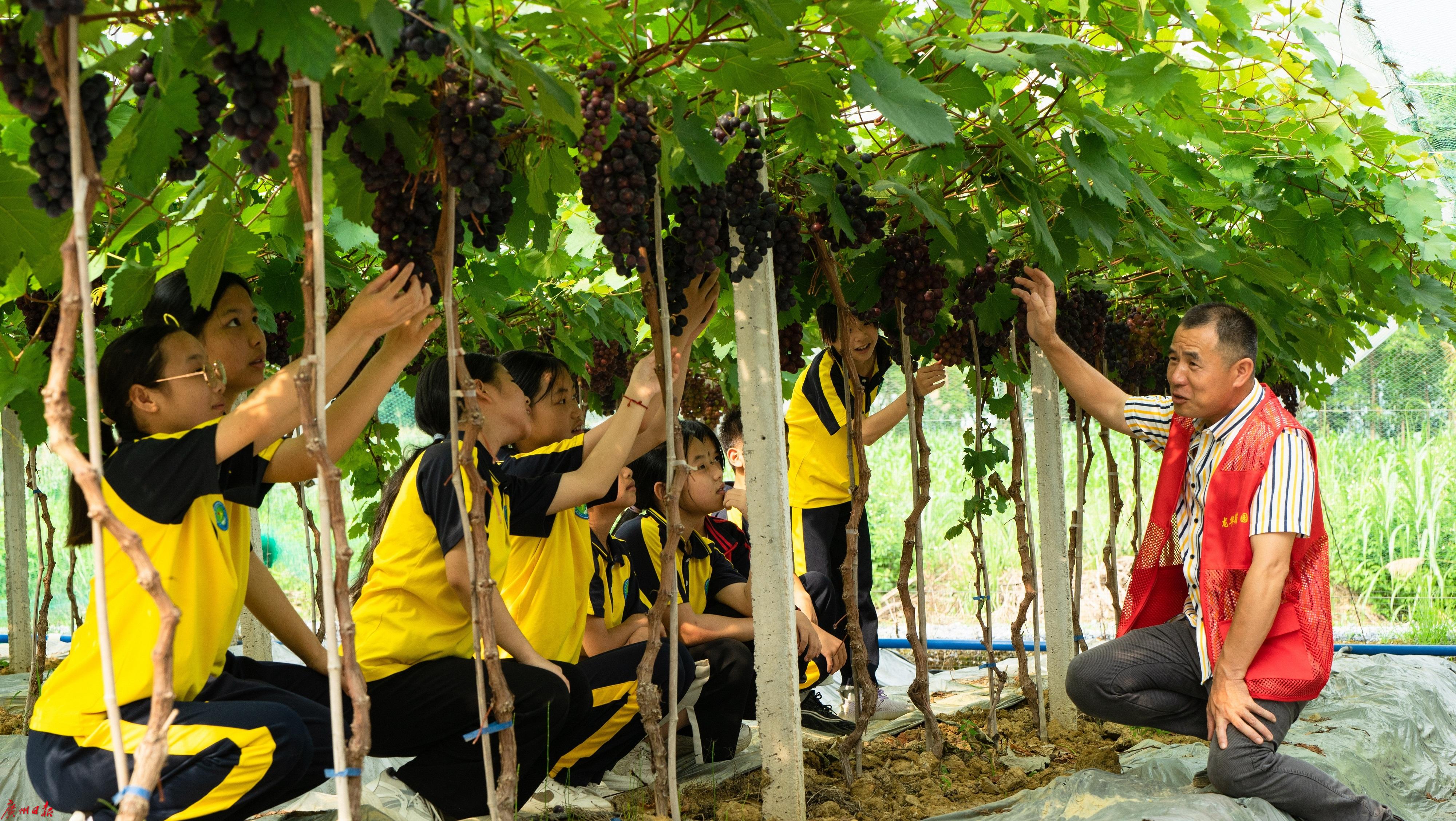 暑假期间,小朋友们在葡萄采摘园开展研学活动。