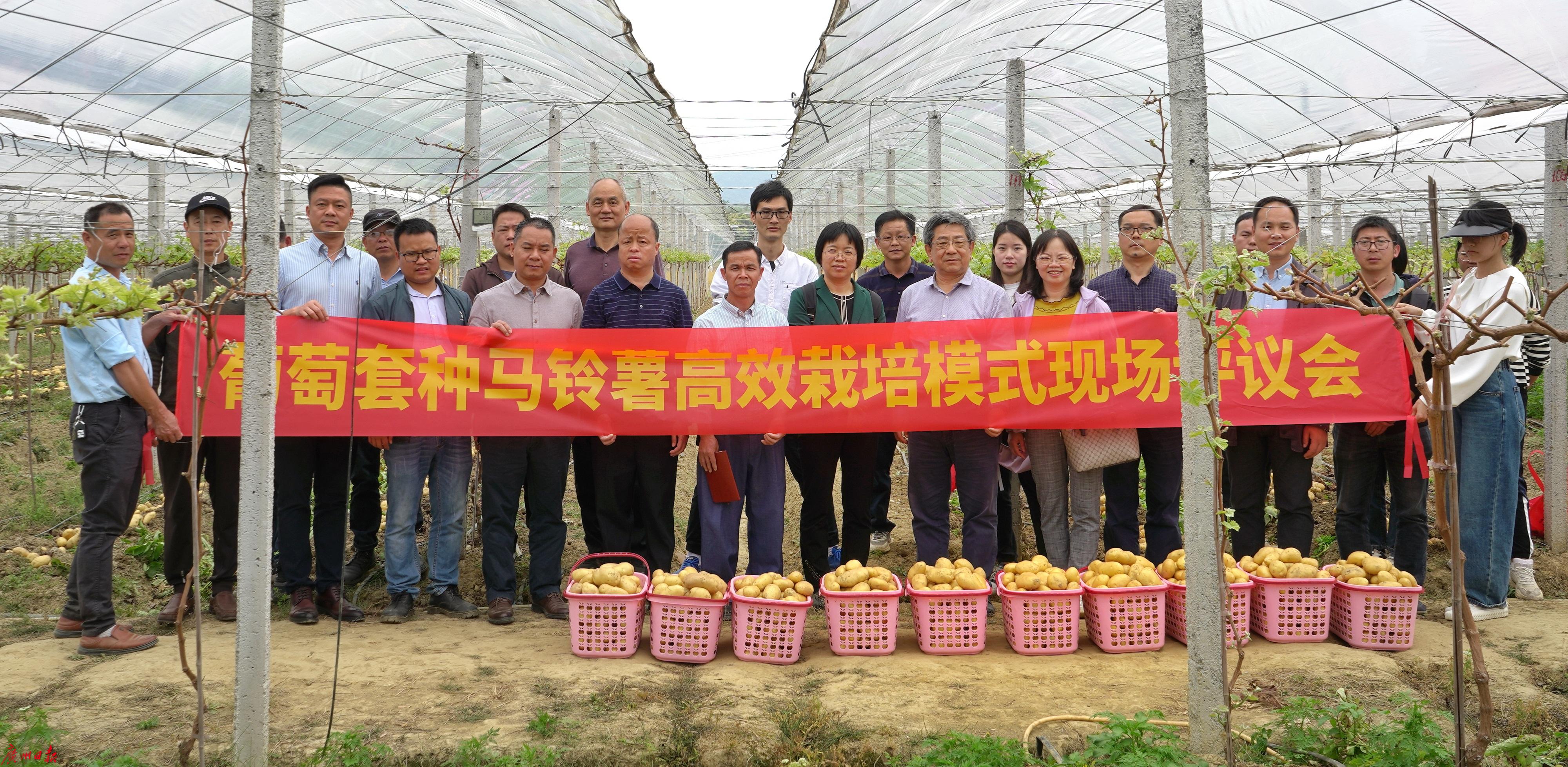 明确方向后,驻镇工作队开始分工寻找资源。功夫不负有心人,在一次龙华葡萄产业发展研讨会上,驻镇工作队与广东省农科院相关研究所专家们一拍即合,经共同评估,提出了“葡萄+马铃薯”的套种模式,而且将龙华葡萄园列入广东省农业科学院《果园间套种粮油作物技术模式研究》示范点。