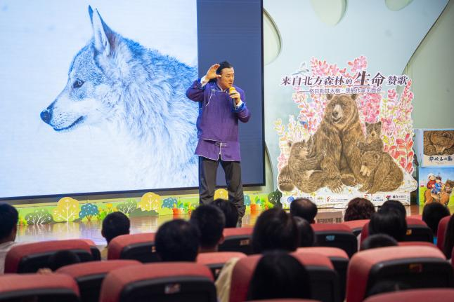 小朋友们都爱动物,也爱看跟动物有关的作品。黑鹤擅长写动物小说,著有长篇小说《黑焰》《鬼狗》《血驹》《驯鹿六季》等多部作品。曾获全国优秀儿童文学奖、冰心儿童文学奖、中宣部“五个一工程”奖、陈伯吹国际儿童文学奖、比安基国际自然文学奖等多种奖项的他幽默有趣,用独一无二的体验式经历,创作出独树一帜的自然文学作品。他的创作始终关注中国北方少数民族古老文化,着力在作品中探求人与自然和平共处的可能性,表达对生命的尊重、关怀和赞美。在这次书香节上,他对小朋友做了多场分享。