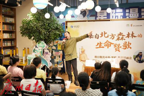 2023年8月20日,来自北方森林的生命赞歌——格日勒其木格·黑鹤《鄂伦春的熊》读者见面会在广州购书中心举行。图画书《鄂伦春的熊》由格日勒其木格·黑鹤与画家九儿联手打造,故事以中国北方少数民族鄂伦春族文化为背景,带领读者走进广袤悠远的中国北方山林,领略森林之子独特的生活,体悟人与万物和谐共生的自然理念。