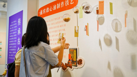 展览还设有中药香囊扭蛋、“济世国潮”套色印章、趣味中药贴纸等展览周边,吸引新生代群体聚集打卡,并在社交平台普及、分享传统文化。