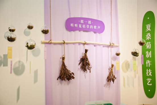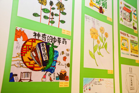 “传承古今”展示了星群传承和保护的三项传统医药类非遗项目“通窍救心油制作技艺”“夏桑菊制作技艺”和“二天油制作技艺”,重点展现各项目的起源、用材、制作工艺等内容,让更多群众发现中国传统文化优秀内核的魅力。在乡村振兴、儿童教育等方面,孩子们优秀的绘画、作文作品,展示了他们对于传统中药的美好印象。