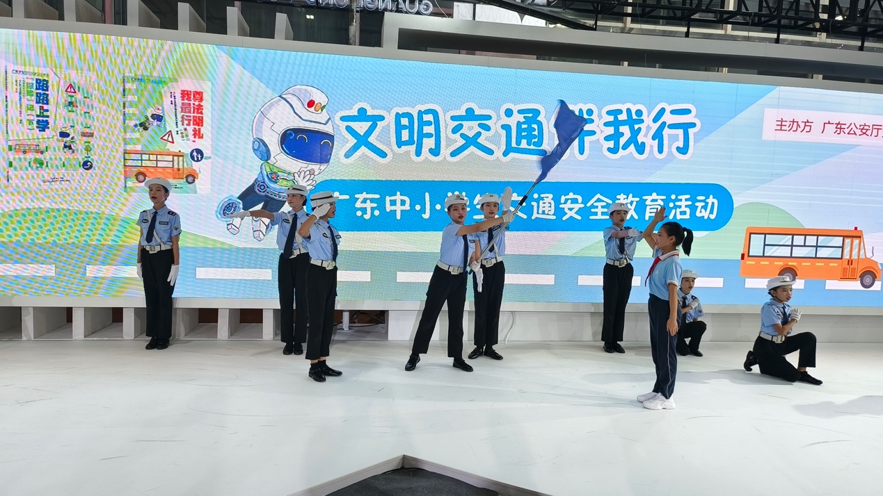 本次活动特别邀请了两支广东省少年交警队——东莞市寮步镇香城小学少年交警队和广州市海珠区邓世昌纪念小学少年交警队,带来了精彩节目《伴你“童”行》和《路,一直在》。广东省少年交警队成立于2021年,是广东省公安厅交通管理局主导、探索的全新学生道路交通安全教育新模式。本次活动,少年交警队尽显风采,吸足了大小朋友的眼球。