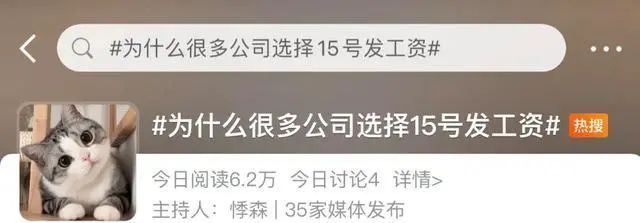 近日,“为什么很多公司选择15号发工资”话题冲上微博热搜。