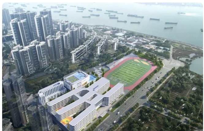 学校总建筑面积53432平方米,教育设施配建齐全,包括教学楼、操场、塑胶跑道等。依托周边一线海岸线与3大滨海公园,学校在设计上注重与自然生态相融合,建筑容积率为0.95,绿化率超35%,不仅为孩子们的课后探索提供“自然学堂”,更为孩子们提供充足的锻炼与嬉戏空间。