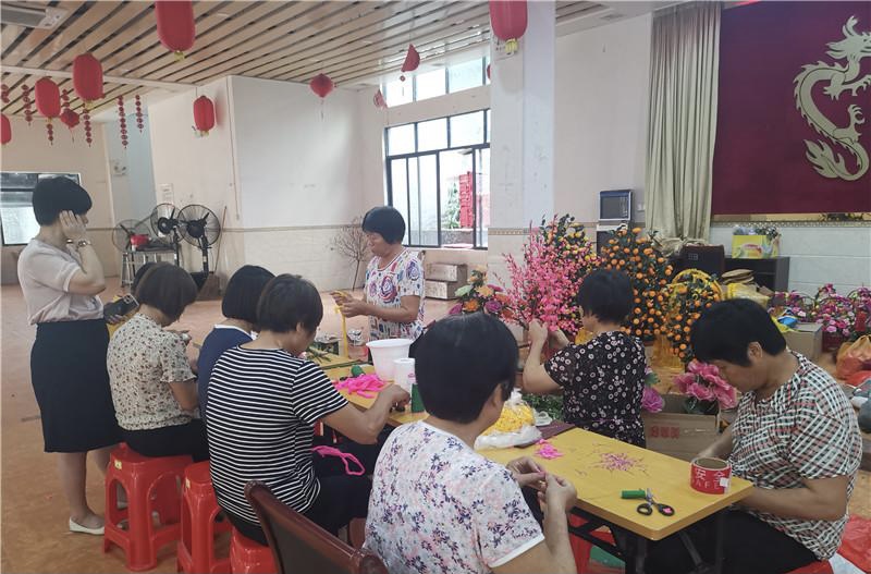 凌边村民在扎花球、穿丝线