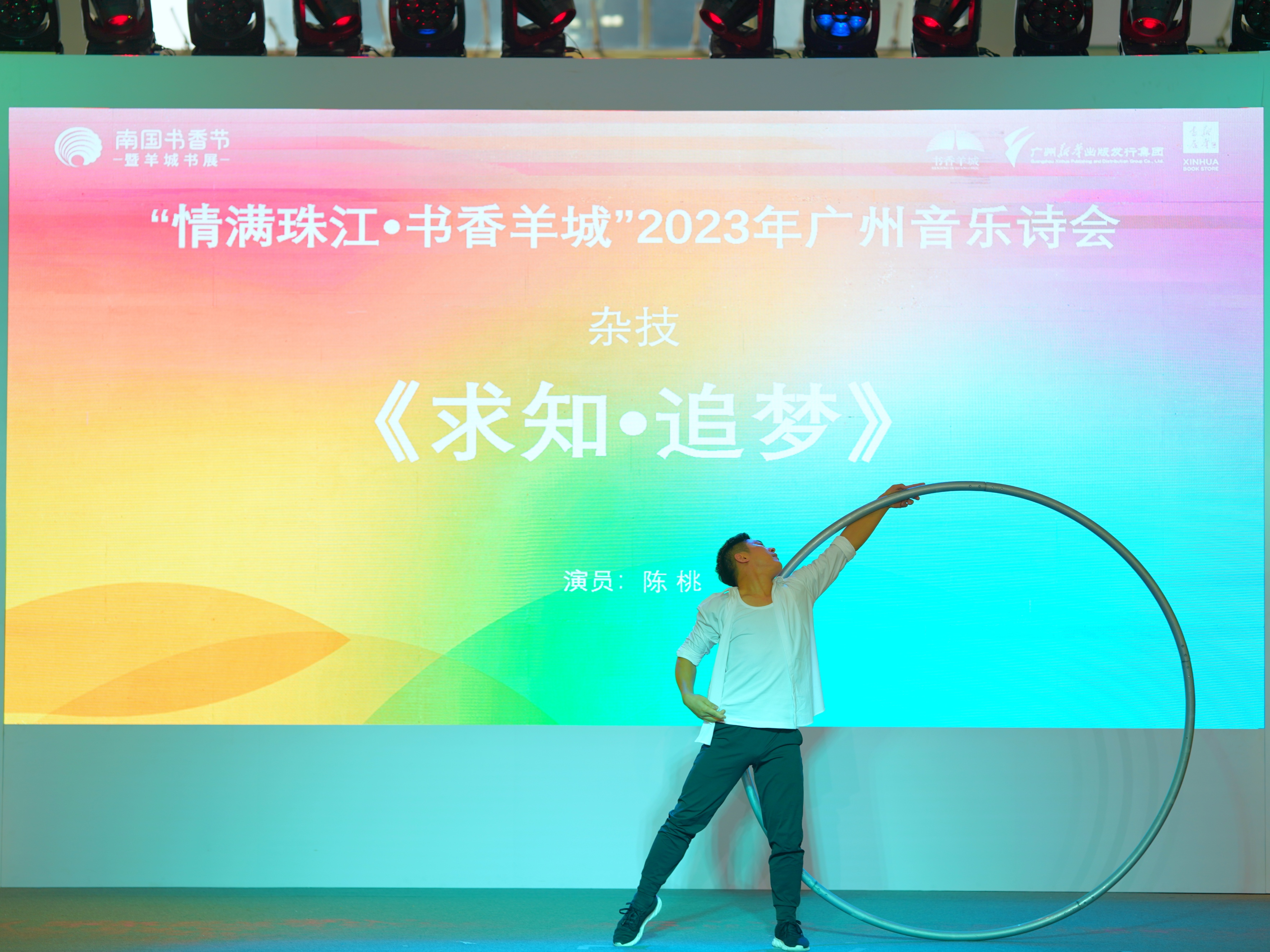 “书卷多情似故人,晨昏忧乐每相亲。”一年一度的羊城书展是全民性的阅读节日,有人说,如果要选一个与诗歌和书香相遇的地方,那广州,是再适合不过了。许多诗人用诗歌讲述读书的亲身体会,抒发喜爱读书之情,朗读者蜀君、魏巍、林俊迪、温林、肖嘉言、卢颖琪、黄一为现场演绎了诗人晴朗李寒、侯马、草人儿的《你好,阳光先生》《名著》和《蜜》三首关于阅读的诗歌,青年杂技家陈桃以杂技《求知·追梦》向现场观众讲述自己与读书追梦的故事,正如唐代诗人王勃说的“穷且益坚,不坠青云之志”,在面对困难和挑战时,无数有志青年依靠自己的付出和坚持,为自己的生命起舞,现场掌声此起彼伏,整场演出高潮迭起。
