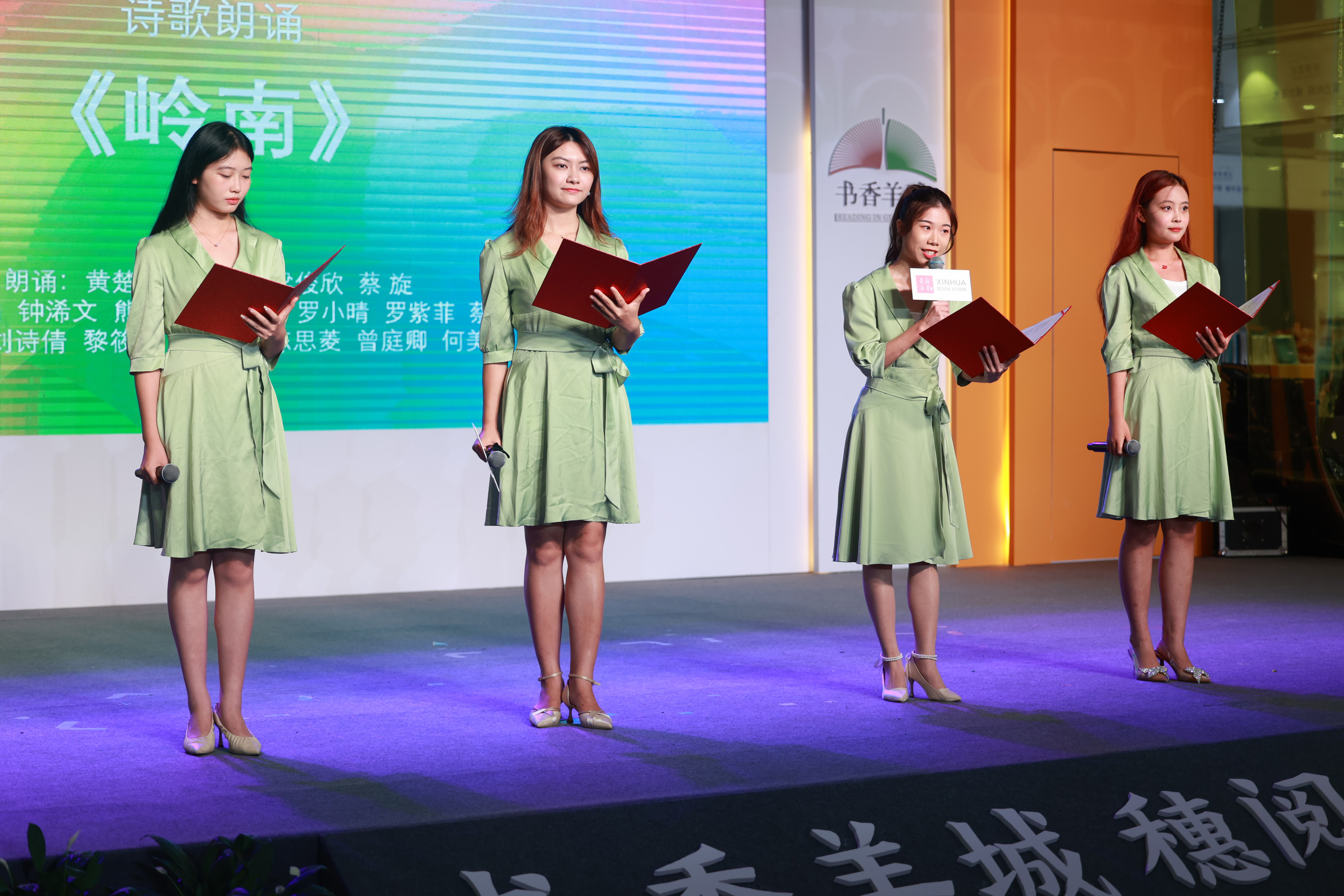 第一首朗诵作品是著名诗人杨克的《岭南》,由黄楚雯、吴温馨、梁俊欣、蔡旋4位朗读者合诵。诗人以诗为媒,向读者讲述岭南的故事,书写了一座底蕴深厚、开放包容的诗歌之城,从趟栊门、满洲窗到广州新中轴线、琶洲商务区,这一切都体现出广州这座城市历史悠久、活力蓬勃的人文气质。