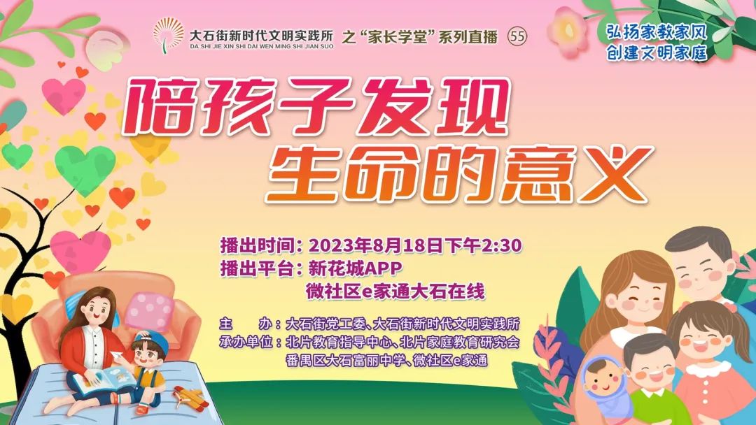 8月18日下午,番禺区大石街新时代文明实践所之“家长学堂”播出第55期节目,围绕“陪孩子发现生命的意义”这一话题,与家长们交流。