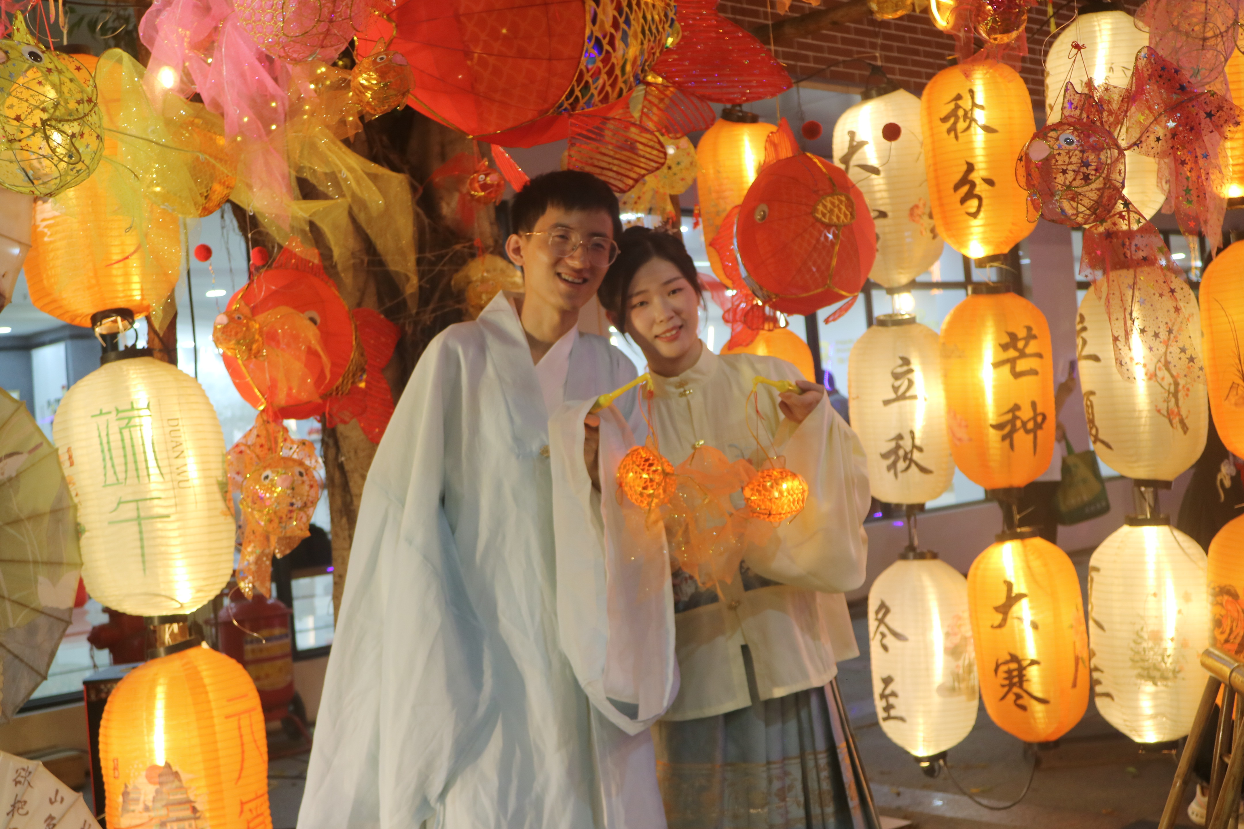 “在七夕节,有什么话相对女朋友说?”“您觉得用这样传统的方式过节怎么样?”……在中华传统节日七夕节当晚,“七夕相伴 心手相连”广府学宫新时代文明实践七夕专场活动在广州市工人文化宫浪漫上演,来自全市各行业的20对情侣身着汉服,漫步在浪漫的非遗鱼灯下,欣赏唯美的诗词灯饰,拍照打卡共同装裱情侣照,在特别的日子里留下值得纪念的一刻。