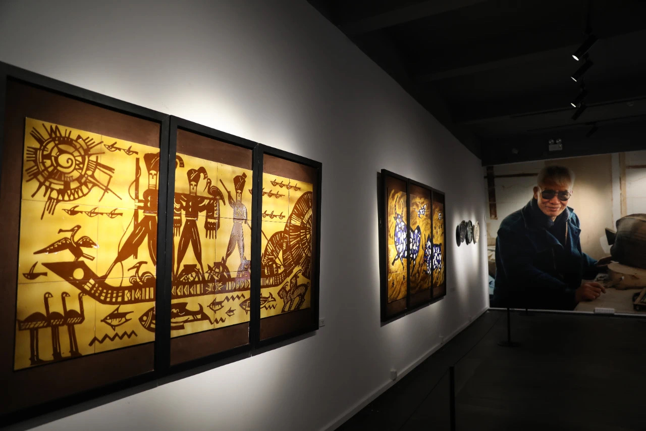 回望谭畅半个世纪前的作品,仍然能看到很多形式语言上的先进性和独创性。他利用石湾建陶的彩釉砖进行壁画创作,利用园林的瓦片瓦筒成型,对半工业材料局限性的理解和运用形成了谭畅教授的独特个人语言。