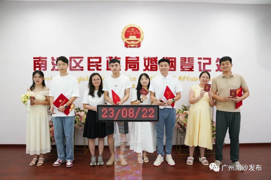 今年8月22日正值传统节日七夕,不少新人都会选择在这一天登记结婚。“因为七夕的寓意比较好,所以我们在网上开放的预约登记名额早早就被约满了。”南沙区民政局婚姻登记处相关负责人告诉小南。