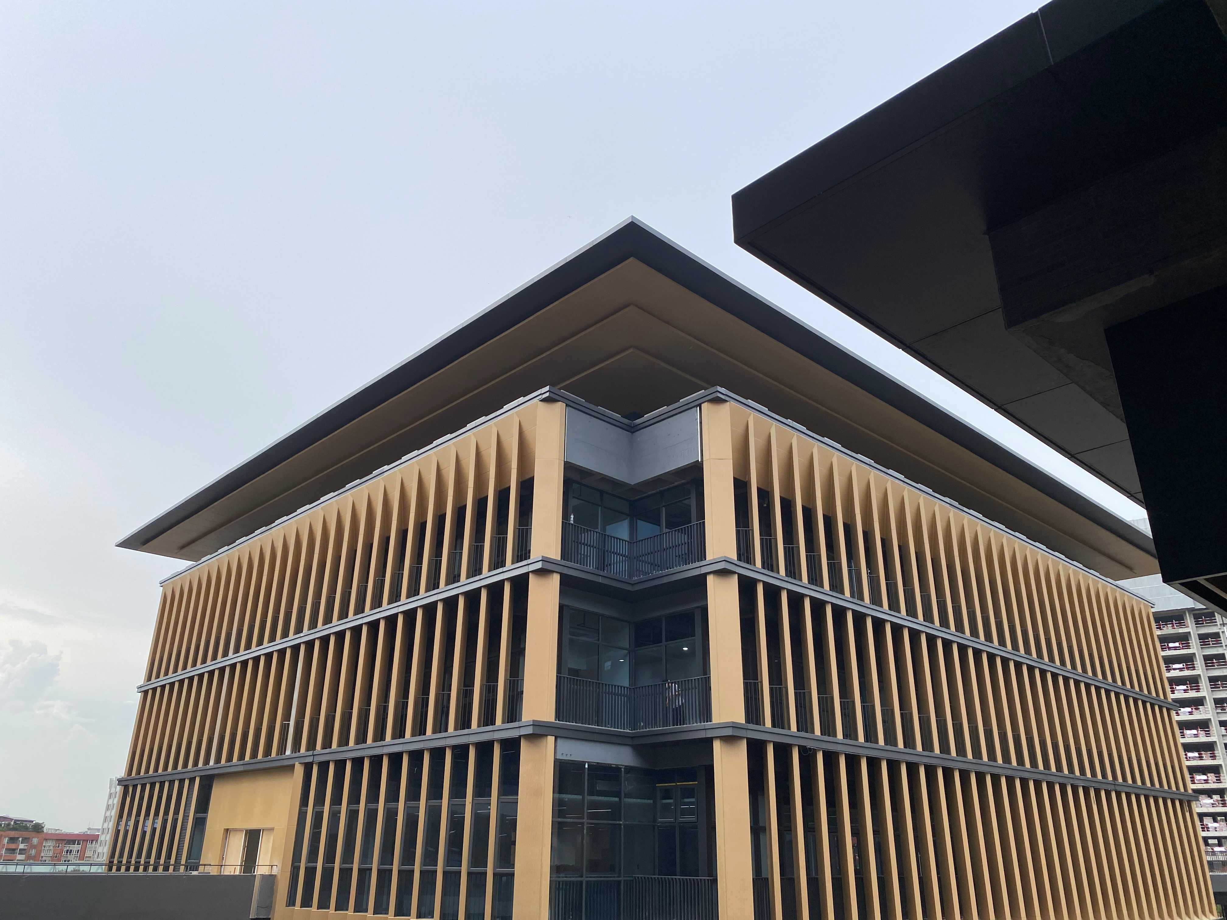 校区的初中宿舍划分为男、女宿舍。其中男生宿舍187间,无障碍宿舍2间。女生宿舍151间,无障碍宿舍2间。初中教学区以普通教室和教师办公室为主,分布于1至5层,首层主要为教师办公、设备用房和架空层。初中部共设普通课室36间,备用课室3间,多功能教室1间。首层还设置有考务室、文印室,教师办公室分散布置在各栋教学楼内。