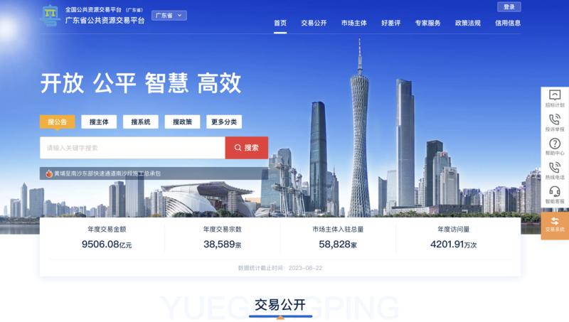 【粤公平上线一周年,累计交易金额达1.9万亿元】8月22日,由广东省政务服务数据管理局主办的“广东省公共资源交易平台(粤公平)上线一周年”新闻通气会在广州举行。据介绍,一年来,全省公共资源交易累计交易金额达1.9万亿元,粤公平日均访问量由上线初期4万次上升至29万次,累计入驻市场主体5.8万家,办理移动数字证书1.3万份。详情>>>