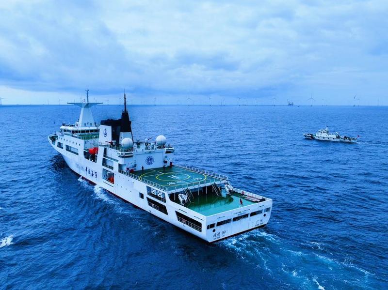 【全国最大海巡船“海巡09”巡航广东海上风电场】8月10日至8月20日,广东海事局、广东省能源局执法人员乘坐全国最大海巡船“海巡09”开展广东海上风电场水域巡航执法行动,先后对珠江口桂山风电场、珠海金湾风电场、阳江中广核风电场等关键水域进行巡航检查,为广东海洋经济发展保驾护航。详情>>>