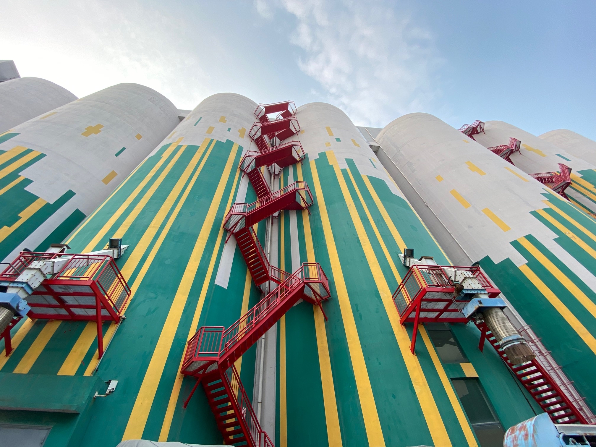 走进今番禺区新造珠江后航道旁的良仓创意园,只见2万多平方米的土地上,一座座20米宽的仓房拔地而起,色彩缤纷,排列整齐,黄色的起重机停靠在江边。