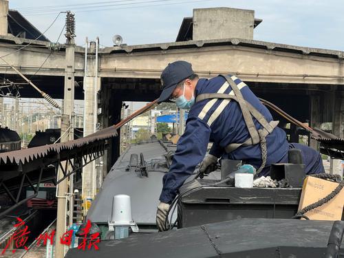 近日,记者走进广州铁路机车检修库,这里面是一片繁忙地检修景象。广铁集团广州通信段广州无线检修车间的职工们背着检修包,顶着炙热的阳光,在机车与工区值班室之间不停地忙碌着。