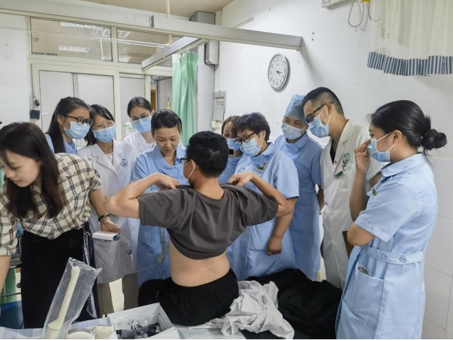 荔湾中心医院在街道社区卫生服务中心开展远程心电操作培训。