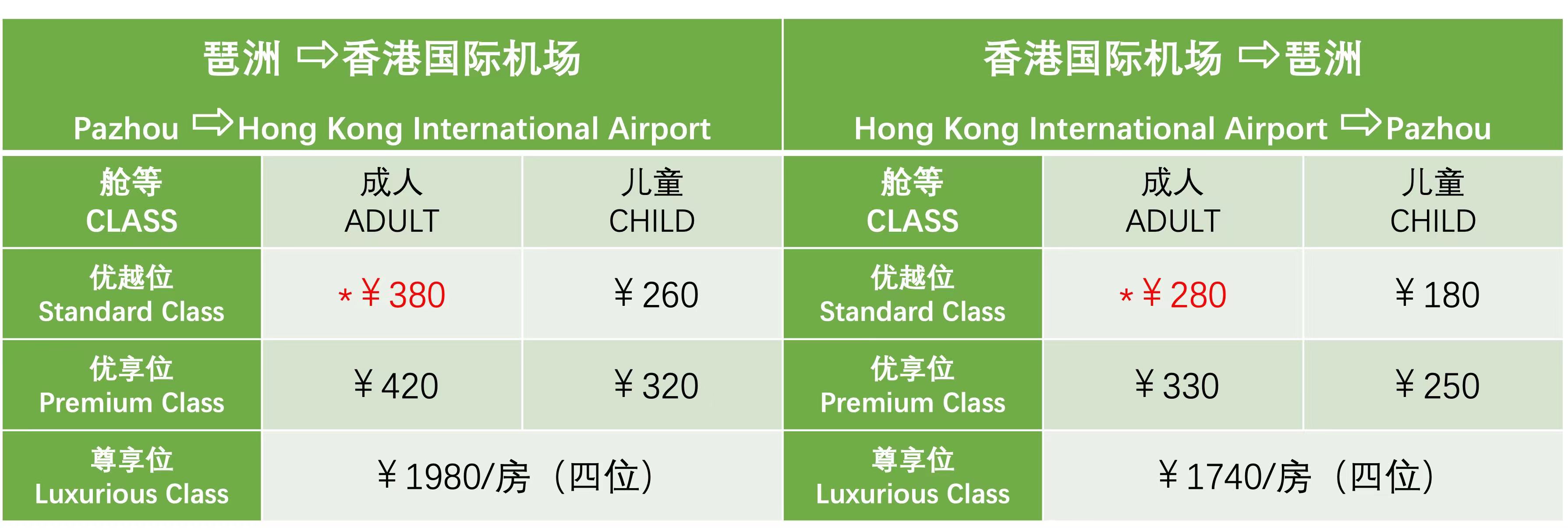票价方面,2023年9月1日起,琶洲至香港机场航线单程票优越位价格调升20元,其他舱位不变,琶洲至香港市区航线票价保持不变。