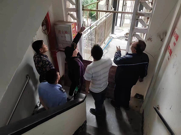 查看电梯加装工程现场。通讯员供图