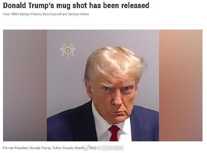 另据@中国新闻网 援引CNN报道,当地时间24日,美国前总统特朗普前往佐治亚州富尔顿县监狱自首。富尔顿县治安官办公室随后发布了特朗普的嫌犯大头照。
