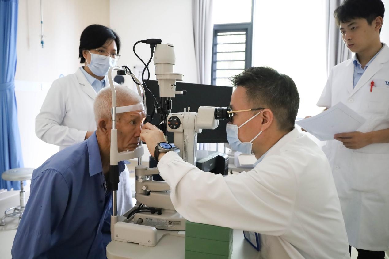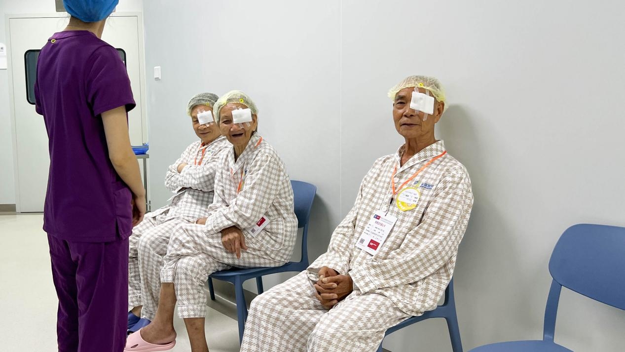 标叔右眼白内障手术后,视力达到1.0,病房窗外的景色看得清清楚楚,病床头电子屏幕上的时间也看得到。“现在没事出去聊天打牌,也不会认错人,所以一听说第二只眼可以手术,我立刻报名啦!”标叔高兴说。