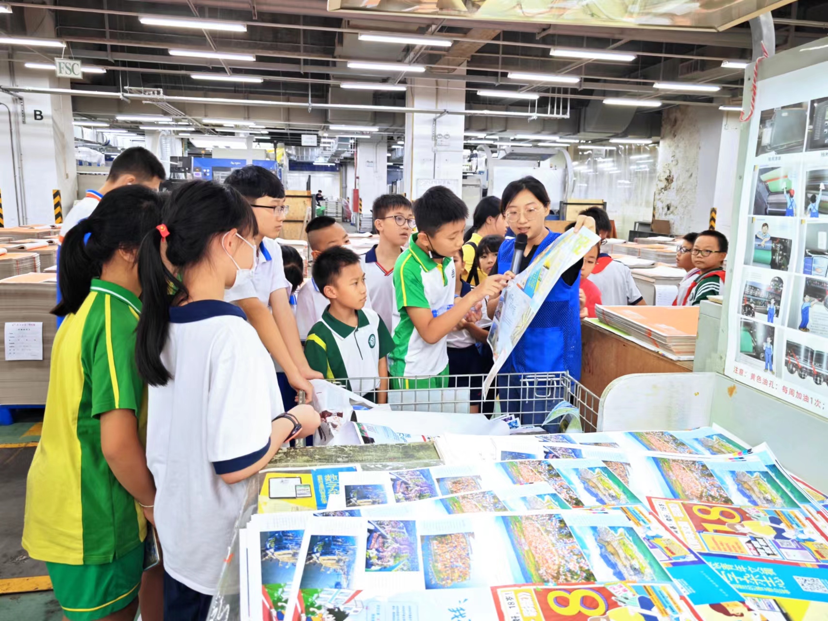 随后,在广州日报印务中心,青少年跟着导师探寻书报印刷的前世今生,了解文字的起源及印刷术的发展。他们先后走进制版、印刷、输纸、发行四个车间,了解报纸工业生产全流程。“快看,这是刚印制出来的物理课本。”当天下午,青少年走进了书本生产车间,看到机器正自动输送出一本本书籍,大家觉得十分新奇。在书本生产车间,导师介绍了不同车间的印刷步骤及功能,科普无线胶装订、骑马订等现代装订技术,加深青少年对正版书籍的认识。