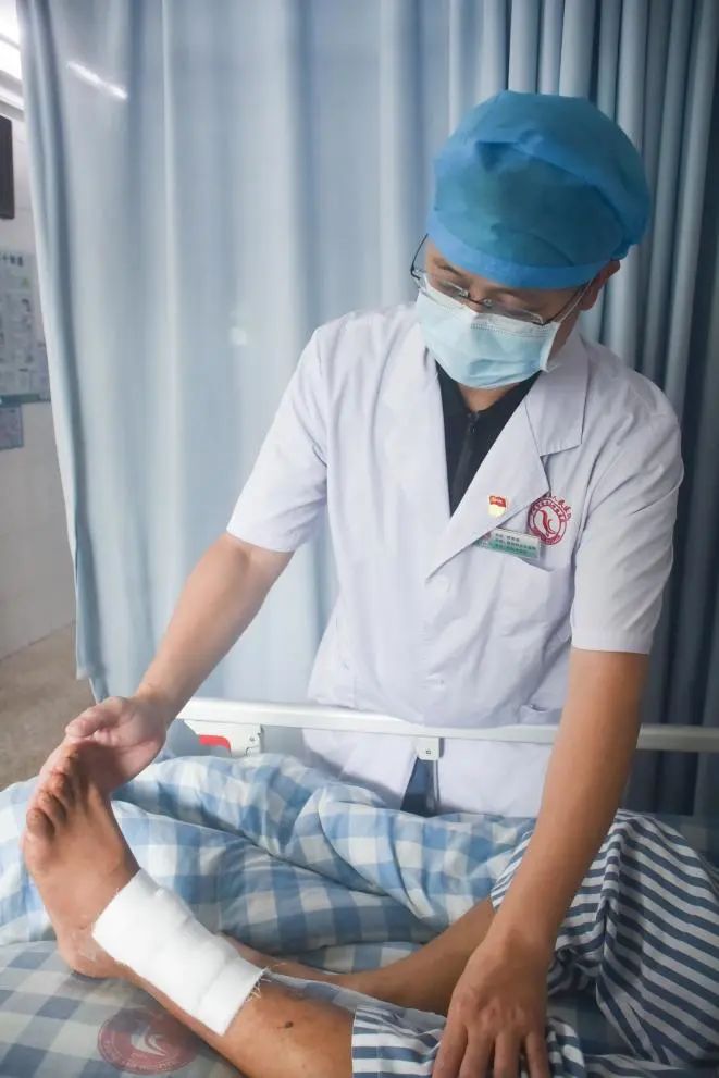 在面对需要长时间精力投入的治疗时,周思栋也丝毫没有松懈。患者入院后,他立即组织科内同事成立治疗小组,制定该患者的治疗方案,适宜再生医疗技术治疗,经过近3个月的精心照料,该患者足踝部发黑的创面长出红润的皮肤,而且患者关节活动基本正常,患者身体状况明显好转。