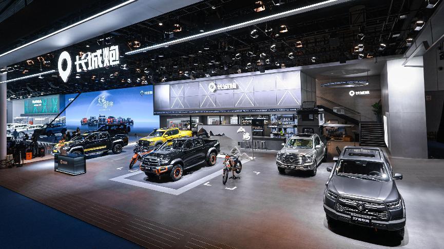 车展上长城炮亮相多款全性能家族产品。如大型高性能豪华皮卡山海炮乘用版,是一台高端豪华皮卡,拥有“高性能、超豪华、超好玩”三大产品力,具有超强穿越能力、百变的改装能力、出众的拖挂能力、全场景休闲适应能力,被誉为“户外之王”。