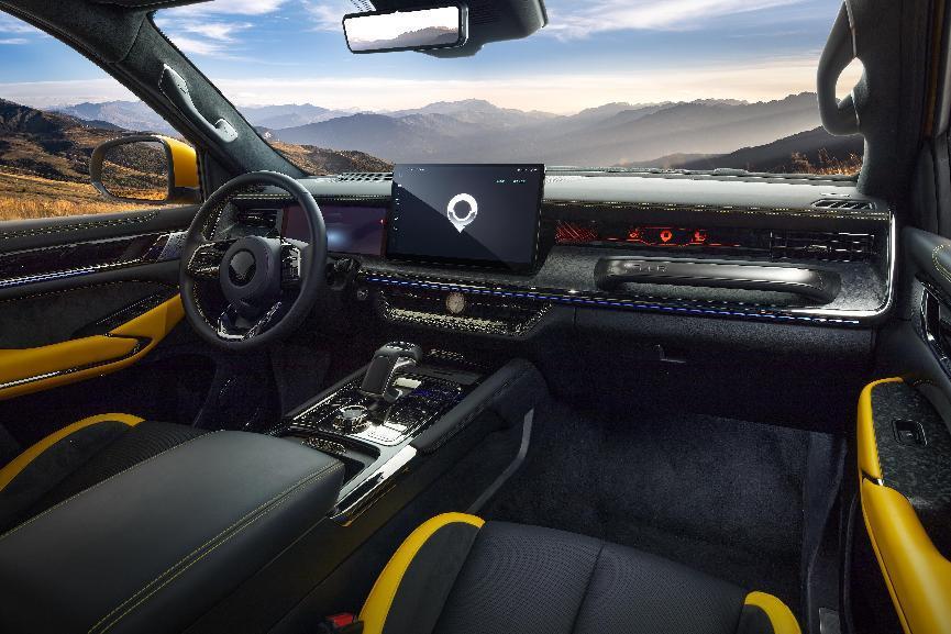 在“更豪华”方面,山海炮性能版座舱内饰采用全黑点缀金黄包覆,搭配哑光电镀装饰,采取12.3英寸仪表、14.6英寸中控屏悬浮设计。车内还首创后风挡电动小窗,方便摄影取景、爱宠互动;首创后排座椅电动调节,最大靠背角达33度。配备L2级高阶智能驾驶辅助。