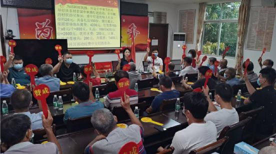 冯容笑不仅在村委旁的“三务”(党务、政务、财务)公开栏张贴了村委的收支统计情况,把村里的每一项开支、收入情况进行项目明细、费用说明,还在村民代表大会上,把大家关注的村民事务进行集中商讨。现在,庆东村超过1万元的支出费用都需要村民代表参会决议,村民看着自己举手支持的村务项目落地实施,认识到新的村委班子真正为民心、干实事,对新的村委班子更有信心,因此更加积极参与到村委事务中来。