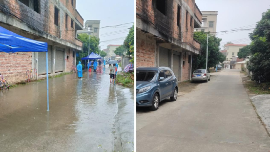 原本经常积水的道路整治积水前后对比。 (资料图片)