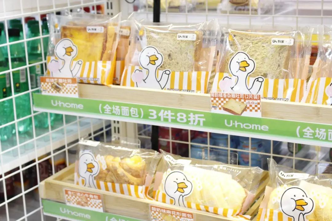 除此以外,在参观门店时记者还留意到货架上一列产品包装都是“不鸭”——国内一款备受年轻人喜爱的网红ip。当代年轻人关注时尚和个性表达,乐于为多元兴趣买单,他们正逐渐成为国潮消费的主力军,而作为便利店消费领域的一大“流量密码”,跨界联名是备受年轻人追捧的一种潮流新玩法。对比联名国外更有影响力的知名ip,有家便利店更希望将中国品牌走出去,占据Z世代追求新奇事物的消费心智。