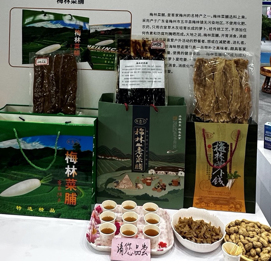 据了解,五华县日日升种植专业合作社参展产品有梅林老菜脯、梅林萝卜钱、梅林萝卜干。为提升梅林镇特色优质产品的产销对接力度,促进特色产品拓展销售渠道,活动期间,梅林镇工作队积极协助企业负责人在展会期间布展,做好准备工作,并积极向游客宣传推广梅林镇的特色农产品。现场反馈,消费者、批发商及零售商品尝了梅林老菜脯、梅林萝卜钱、梅林萝卜干以后,纷纷表示风味独特、口感非常好。