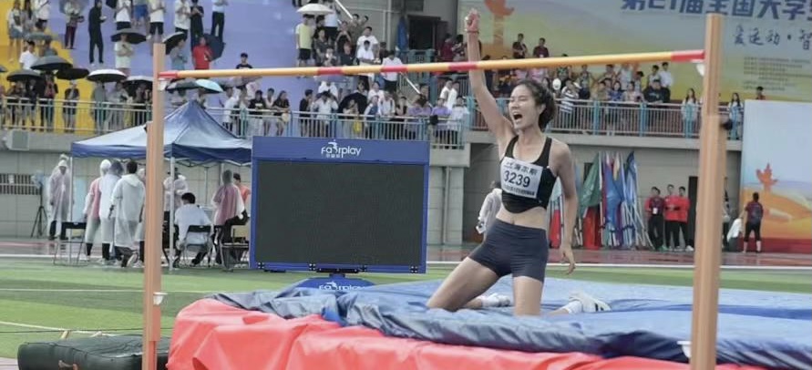 在安徽职业技术学院举行的第21届全国大学生田径锦标赛,是成都第31届世界大学生夏季运动会之后的又一次体育盛会。本次赛事有来自清华大学、北京大学等全国390所高校4800多名运动员、教练员报名参赛。来自广州体育学院的番禺区南村镇里仁洞村籍运动健儿李沅荧,在参加女子丙组跳高比赛中突遇暴雨。雨中作战最考验跳高运动员的心理素质和身体调整能力。李沅荧将起跳高度定在161cm,在挑战161cm和166cm的高度都是在雨中一跃而过。当横杆高度上升到169cm时,李沅荧因身体有点冷却而状态受到影响,第二杆才顺利跳过。当高度调高至172cm后,李沅荧在前两杆没能越过,如果第三杆没能跳过,李沅荧的此次全国大学生田径锦标赛之旅便就此完结。好个李沅荧,她在教练的指导下努力调整状态,最后不负所望,在第三杆成功越过了172cm的高度。到了175cm的决胜高度,李沅荧找好感觉乘胜追击。一杆越过绝杀夺冠,并顺利过到国家一级运动员的申报标准。