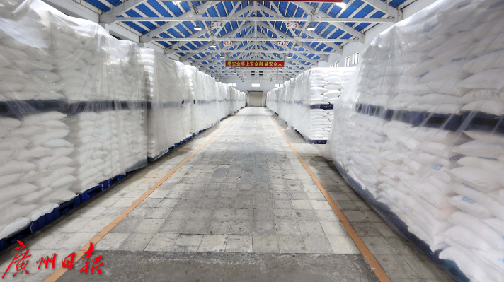 广州盐业塞坝口生产基地内,原料仓堆得满满的。