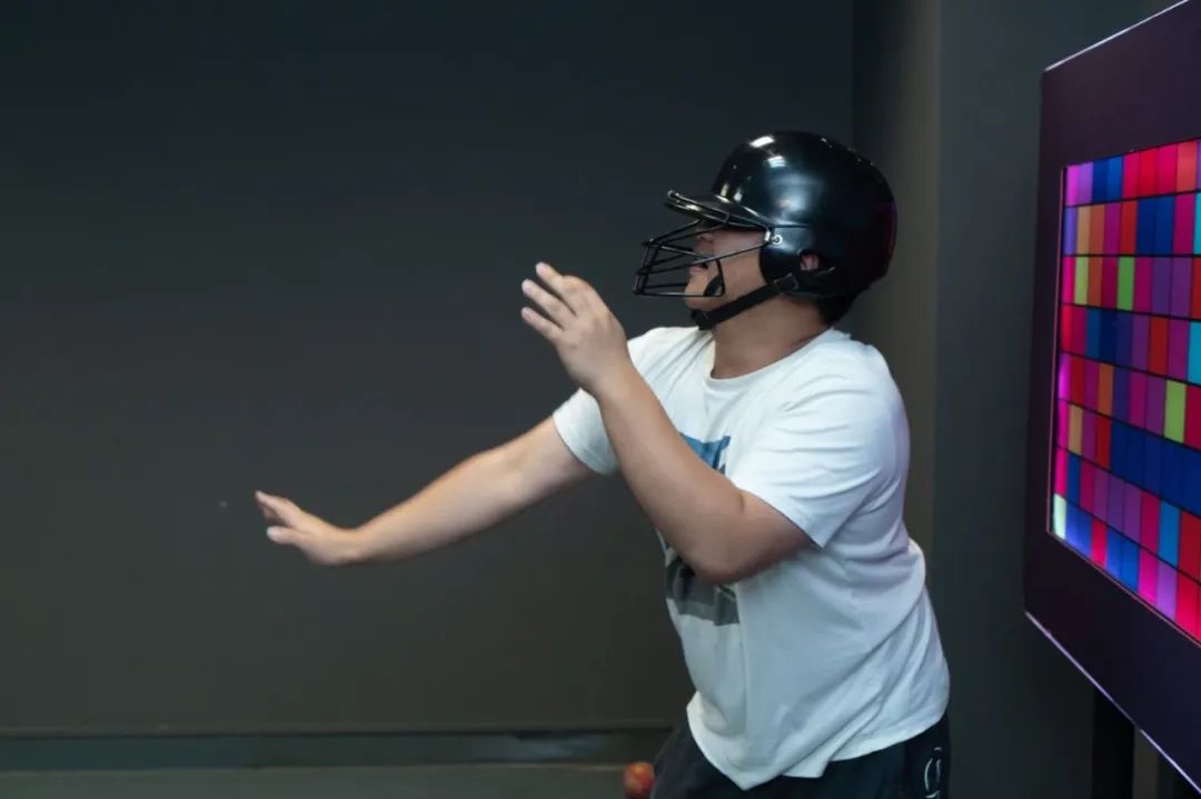 活动现场,“决战到底”“井字游戏”“大家一起蹲蹲蹲”等热身小游戏,点燃了粤港澳青年们的热情,更点燃了活动的热烈气氛。还有竞技飞碟、模拟高尔夫、数字拳击、数字冰壶等融合了元宇宙科技和数字体育的体验项目,吸引着粤港澳青年们沉浸其中。