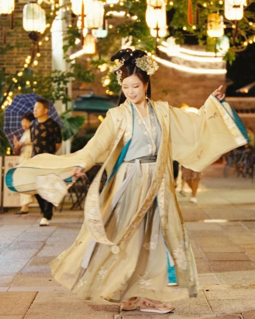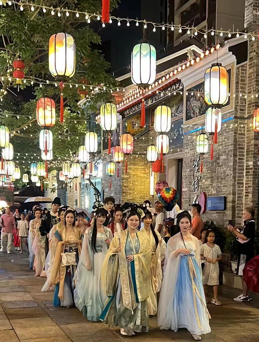 牛郎织女鹊桥相会的美丽传说,象征着人们对真挚爱情的渴望和追求,更承载着人们对美好生活的向往和期待。当天晚上,汉服爱好者们穿着古雅优美的汉服,漫步在幸福里。古朴的建筑、斑斓的彩灯与七夕民俗文化相得益彰,沉浸式的体验令人不禁产生“穿越时空”的错觉。
