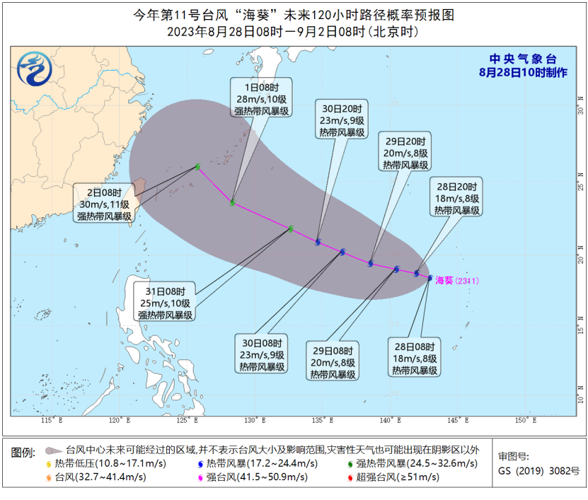 由于目前海温条件较好,普遍都在29℃以上,加上未来高低层风切变不大,因此考虑它的强度还会继续加强,最强可达超强台风级。对广东来说,9月2日到3日登陆的可能性不小,大家一定要高度重视,切勿掉以轻心。