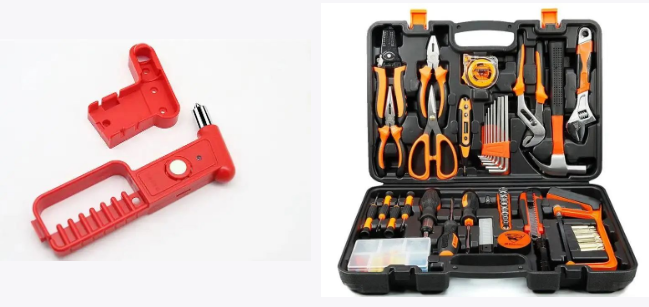 应急锤和五金工具箱可以帮助我们在车辆溺水时打开车门逃生。车窗玻璃边缘和角落是容易破碎的位置,当遭遇车辆溺水时可以尝试敲击这些部位。