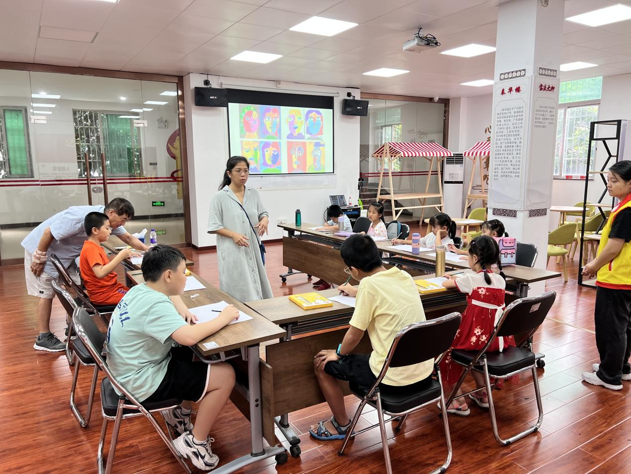 (图2:画廊老师现场指导孩子们作画)