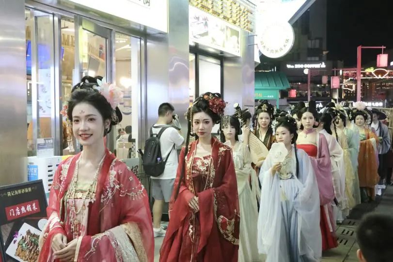 活动期间进行了多次花魁游街。身着各式汉服的花魁在大街上进行展示,多次点燃现场热情。